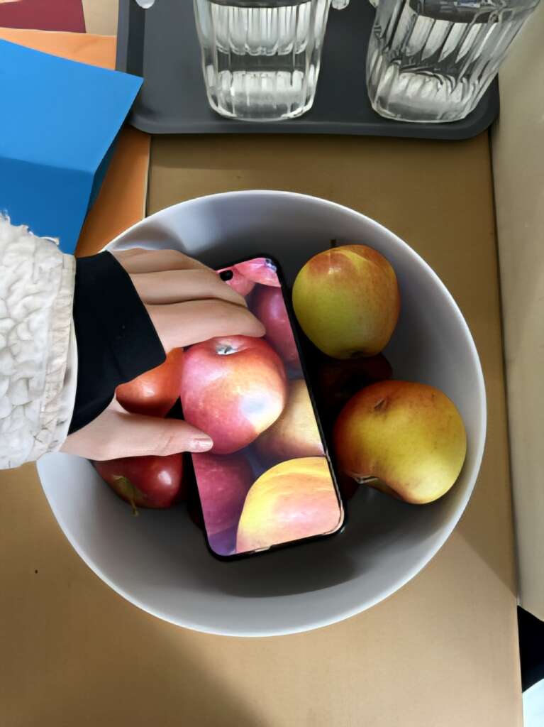 Inspiriert von Arbeiten des Social Media Künstlers Anshuman Ghosh, erprobten Schülerinnen und Schüler der Klassenstufen 8 und 10 im Kunstunterricht, wie sich das Handy auf kreative Weise im wahrsten Sinne des Wortes in die Bildgestaltung einbauen lässt. Fotos, die zunächst mit der Handykamera aufgenommen wurden, markieren in einem zweiten Gestaltungsschritt wesentliche Bildteile einer erweiterten Szenerie. Die digitalen Puzzleteile auf dem Display verschwimmen so mit der Umgebung und führen zu überraschenden, witzigen und zum Teil illusionistischen Effekten. Die Schüler:innen waren mit Spaß und Ideenreichtum bei der Sache und erlebten, wie man als Gruppe zu kreativen Lösungen kommen kann. Gleichzeitig stellten sie kritisch fest, dass Bilder nicht immer das darstellen, was man zu sehen glaubt und dass man nicht alles, was man sieht, für wahr halten sollte.