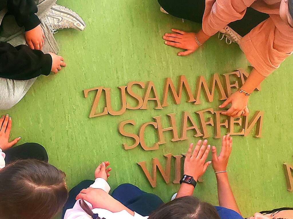 Am vergangenen Mittwoch versammelten sich Schüler:innen, Kollegi:nnen und Eltern am Nachmittag auf dem Vorplatz des mehr
